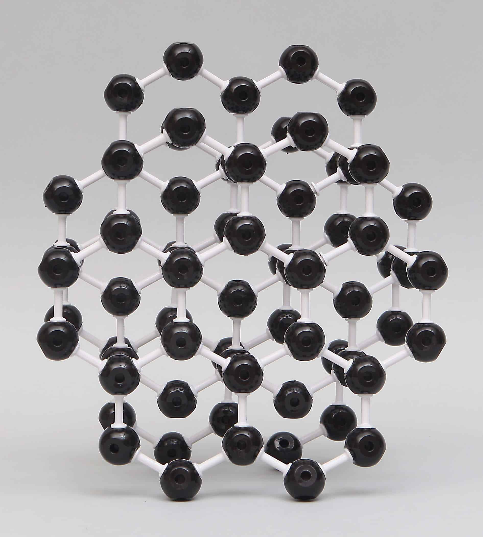 The model shows how graphite's layered structure accounts for its slippery" property. Compare graphite with diamond to explain graphite's electrical conductivity.
