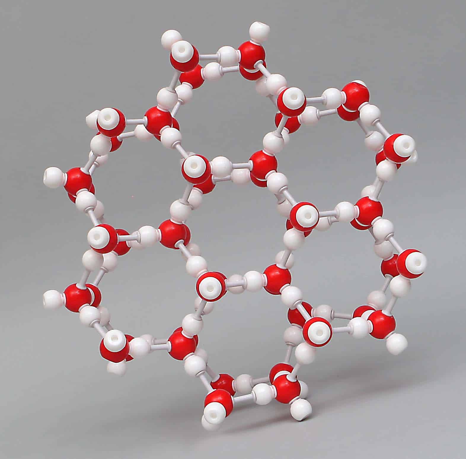 Two layers of hydrogen- bonded water molecules showing the crystalline, open structure of ice.